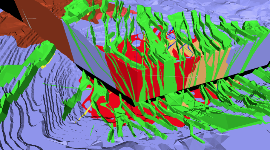 Home Services Geologie und Ressourcen Modellierung und Abschätzung von Mineralressourcen 3D-geologische Modellierung und Modellierung von Gesteinsdomänen